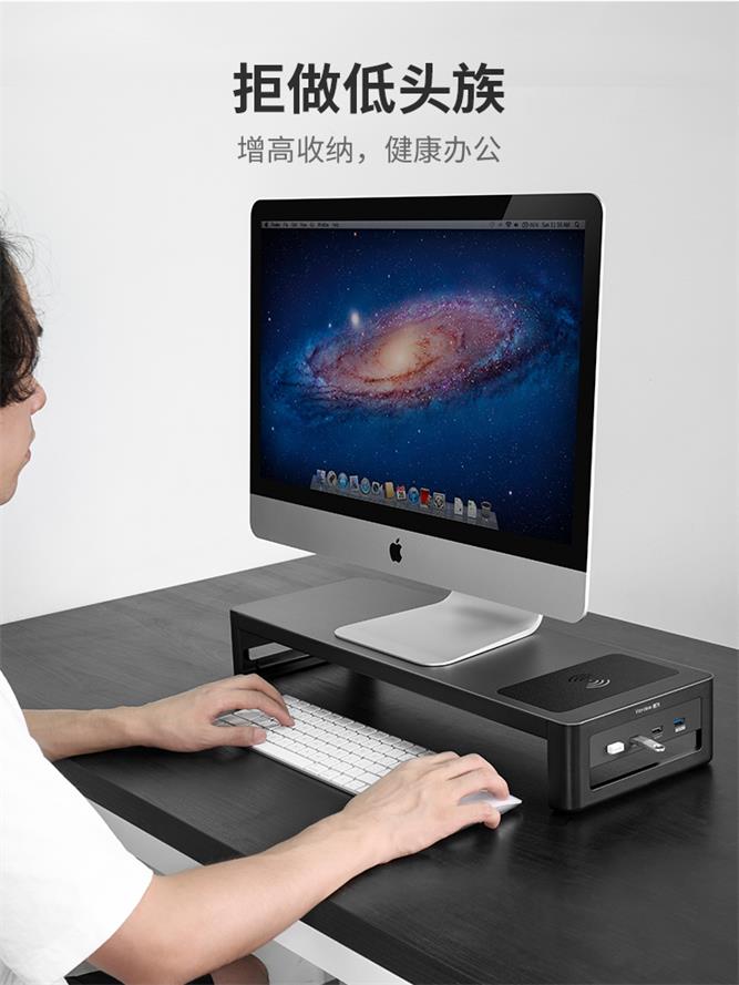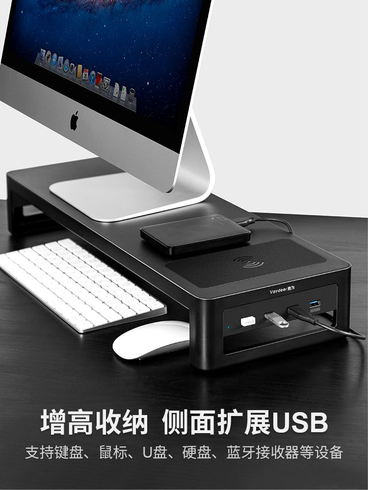 贵州 新疆 内蒙古 西藏 暂不发货 usb电脑显示器增高架 无线充 音响 铁艺电脑支架 桌面键盘收纳置物架 抬高显示屏幕托架