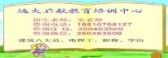 5、培训费用:建筑八大员850 造价员3800监理工程师1500 郑重承诺:正 书均属中国建设教育协会颁发,官方网站永久查询,全国通用,凡报名者本次不过下次免费重报或者直接退款.您的顺利就业与工作是我们努力的最终目标! 除以上培训项目外,可报以下专业:大专和本科学历,造价员 预算员,物业经理 电工,焊工,塔吊等技工类以及职称等.更多招生项目请咨询招生老师经营地址:安徽省马鞍山市 花山区- 朝阳北苑朝阳北苑