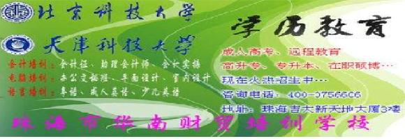 华南财贸学校是北京科技大学、天津科技大学经广东省教育厅批准的设在珠海的函授站,招收成人高等学历教育大学专科、本科生。