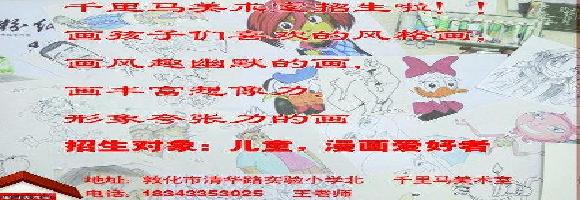 兴趣从小培养,绘画是开启想象力的金钥匙,千里马美术室从孩子们最感兴趣的风格画出发,以童画为主题,面市招生。