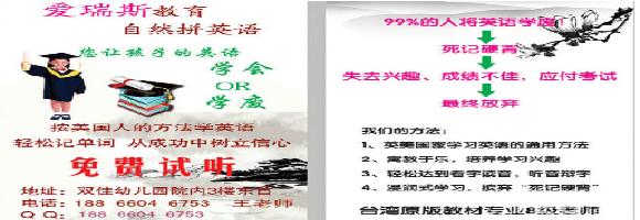 为了不让孩子和我们一样将英语学废,聘请专业老师开设英语班:爱瑞斯自然拼Phonics英语。