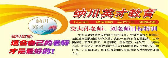 纳川英才教育一直秉承良心做教育,口碑树品牌,目标明确,提分第一。我们的优势:1.强大的师资队伍2.全面的独家内部资料3.高效课堂,系统梳理知识点,强化重难点。4.贴心服务理念,没有笨小孩,只有好方法,好心态,好成绩。