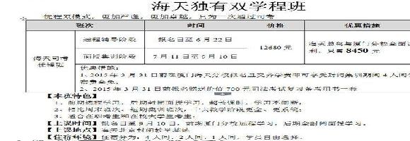 1、2015年3月31日前在厦门海天分校报名即可享受封闭集训期间4人间住宿费全免;