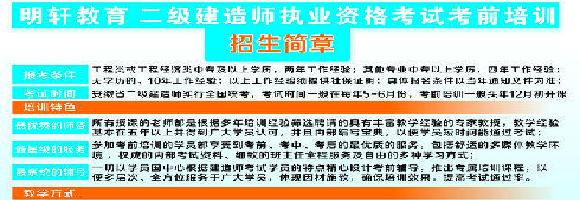 2016明轩二级建造师培训班开始上课了,上课地址:合肥市桐城路与芜湖路交口南20米东侧香港商业步行街B座406。外地学员适当减免车旅费。