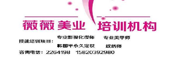 薇薇美业培训机构 培训项目:专业化妆师 美甲师 半永久化妆师 纹绣师 即日起报名即送价值888元专业工具箱一套!再送价值399元艺术写真!专业的技能培训,一对一的教学,随到随学,免费进修,免费考取职业资格证书,咨询热线:0753-2264198-15820392980.14715044700.地址:沿江西路丽江花园d栋4至9号(金沙湾酒店往嘉应大桥隧道方向)