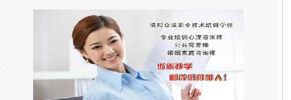 洛阳市众成职业技术培训学校是由洛阳市人力资源和社会保障局批准,民政局注册。是省内最完善的心理咨询师、公共营养师、高级育婴师、婚姻家庭咨询师等职业资格认证培训机构之一。