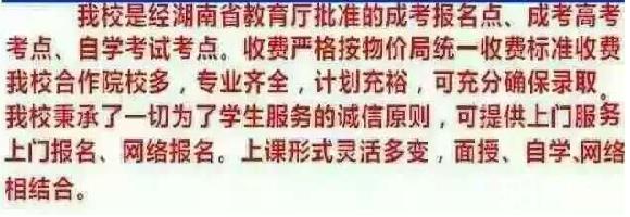 一流服务:我校秉承一切为了学生服务的诚信原则,可提供上门服务,上门报名,网络报名。上课形式灵活多变,面授、自学、网络相结合。经营地址:湖南省株洲市贺嘉土