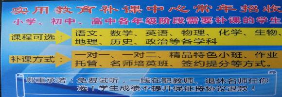 实用教育优质课外辅导,现拥有丽江较好的教师团队,团队中在职、退休老教师占60%。以教学质量说话,免费试听,任选老师,成绩不明显提升保证退费。 欢迎咨询:(和老师13388885229)
