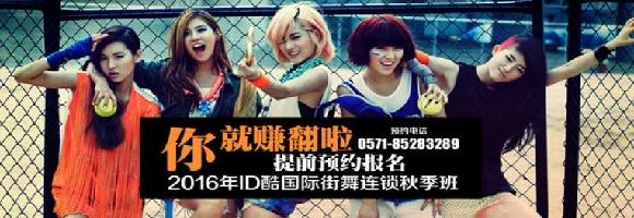 浙江省杭州ID酷国际街舞潮流中心(简称ID酷)是国内一流的街舞培训专业机构,成立四年来,迅猛发展, 于2010年被评为“浙江十佳教育机构”,2011年被浙江省文化厅、教育厅授予“浙江省青少年艺术培训示范基地”。三年的时间,IDCREW连续荣获七次全国大赛冠军,与众多国内一线艺人合作MTV,演唱会等拍摄表演,参与浙江卫视宣传片,可口可乐广告,蒙牛广告等诸多时尚潮流广告拍摄。现在已拥有四家连锁店面,总计1800余平方,21间专业舞蹈排练教室。 2013年暑假,杭州ID酷国际街舞潮流中心28位一流教官携手国内众多知名舞者, 以超一流的师资,专业的课程,浓郁的氛围,时尚的连锁设施,为您提供最强师资、最具实力的专业街舞培训暑期课程。