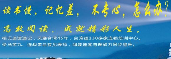 。目前杨氏速读在台湾已有45年的历史,超过130多家的连锁培训中心,并受到马英九,连战的亲自接见与表扬。高效阅读,让你的阅读速度和理解力同步提升