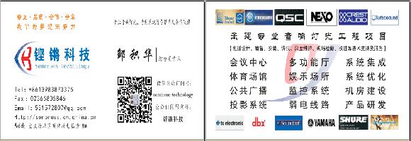 重庆铿锵科技有限公司简称铿锵科技, 主要从事:专业团体录音棚、个人录音棚、7.2声道影院的设计建设调试,电声录音合成、人声录制修饰、影剧院专业音响系统的设计销售建设调试。音视频系统设计集成,室内外专业音响,舞台灯光,音视频系统,同声传译系统,背景音响,各类会议室,多媒体教室,网络弱电线路的销售、设计、安装、调试、以及现场检测维修服务。