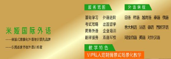 东莞市米娅国际外语是一家专业国际外语教育培训机构,体验式情景化外语培训领先品牌,专注于日语、韩语、越南语、泰语、俄语、意大利语、法语、西班牙语、德语、阿拉伯语、英语、对外汉语等多种语言培训,在满足各类人群不同外语需求的同时,还联合东莞市人力资源协会为企业提供专业的免费外语服务咨询。