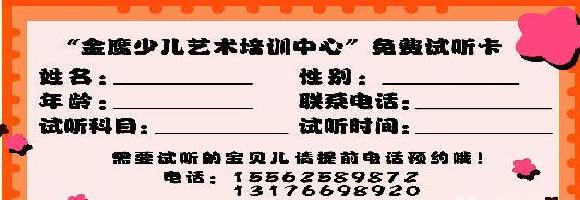 中心现开设儿童舞蹈考级班、少儿拉丁舞班、语言表演班、钢琴一对一,电子琴、视唱练耳、乐理