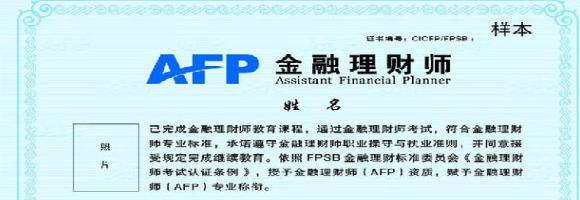 AFP证书不仅具有公正性,性和公认性,而且还具有实务性,能力性和前瞻性;具有国际通行的财富管理职业的专业身份标识,提升个人金字品牌形象,在实务中增强信任度、忠诚度和个人竞争力;在名片和介绍资料中使用标志,并在网站公布名单,供社会各界查询确认,增添自身公信度;优先获取国内外理财规划行业相关信息,优先参加年度论坛、沙龙等相关活动;为晋升更高级别理财规划师行列铺垫基石,为今后发展打开方便之门。